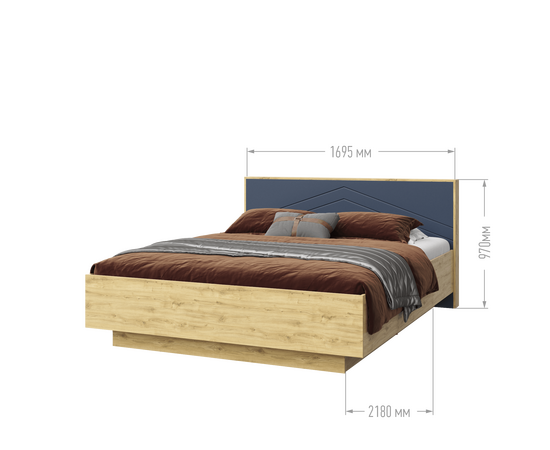 Кровать 1600 Тиана (дуб наварра 386 SWN / SAT 27(синий мат.))