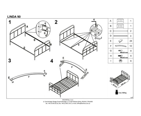 Ширина кровати со спальным местом 90х200 - 940 мм.