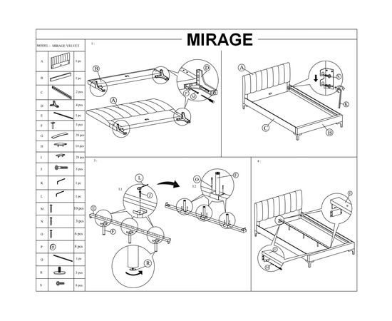 Кровать MIRAGE VELVET TAP. 186 (черный/золотой)