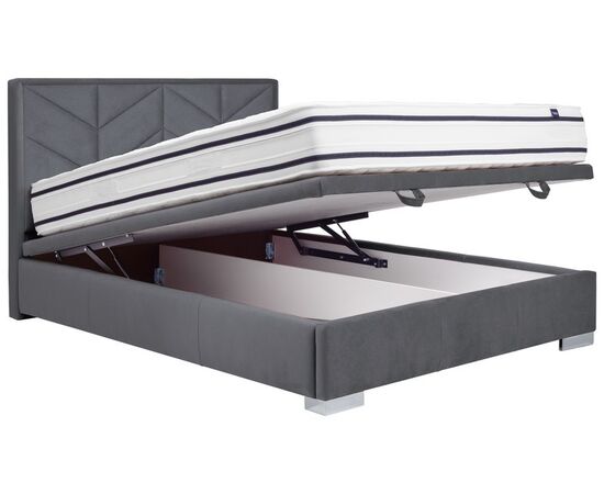 Благодаря используемой конструкции каркас кровати почти равен размеру матраса. Деревянное основание полностью обито тканью, используемая нескользящая ткань препятствует смещению матраса. Ниша для белья из белой ламинированной плиты, газовые подъемники.