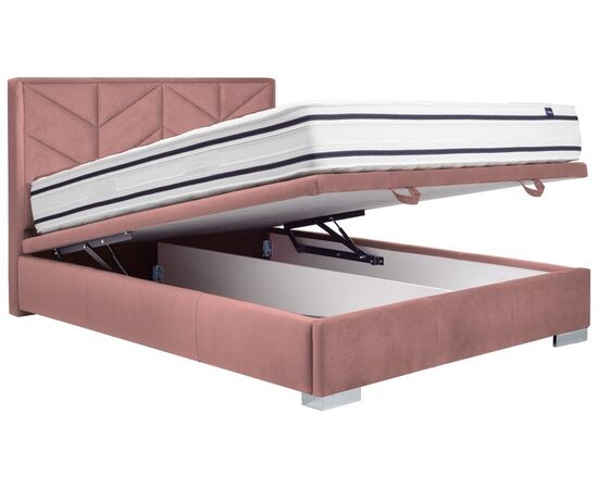 Благодаря используемой конструкции каркас кровати почти равен размеру матраса. Деревянное основание полностью обито тканью, используемая нескользящая ткань препятствует смещению матраса. Ниша для белья из белой ламинированной плиты, газовые подъемники.