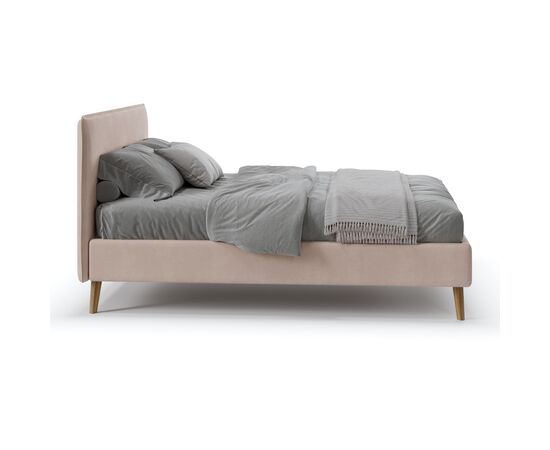 Данная модель позволяет использовать ее в небольшом пространстве, за счет узких царг. Высокие деревянные опоры придают кровати легкость и элегантность. В комплект входит ортопедическое основание. Чехол с царг съемый, что визуально объединяет осноание и делает его литым без визуальных стыков.