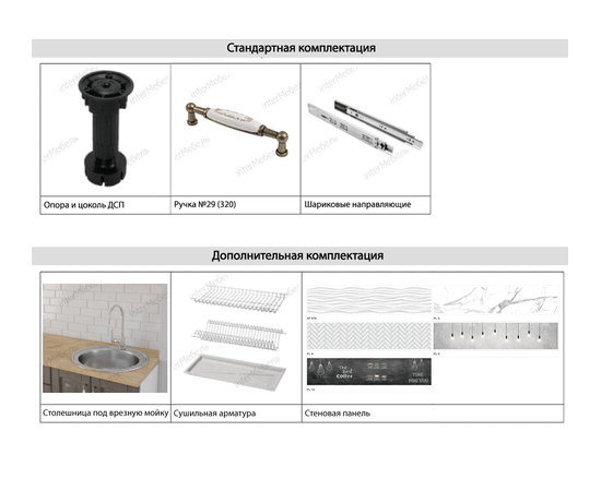1. Цены за комплекты указаны при использовании расцветок корпуса ЛДСП 1-й группы. При выборе корпуса ЛДСП 2-й группы цены уточняйте у менеджеров.