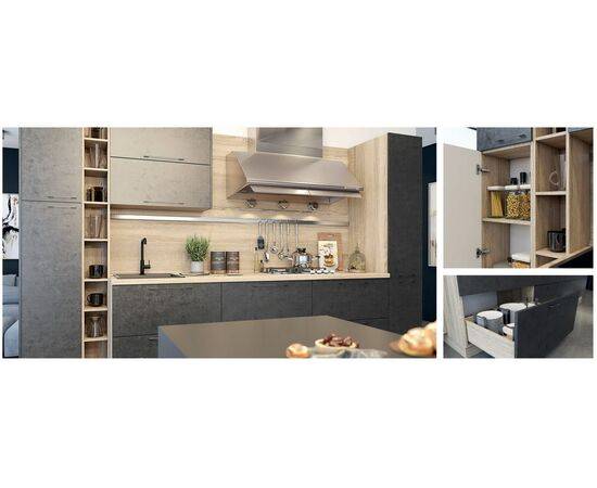 - Модули с корпусом в цвете «Серый» комплектуются петлями «Titus» с возможностью установки демферов для плавного закрывания створок.