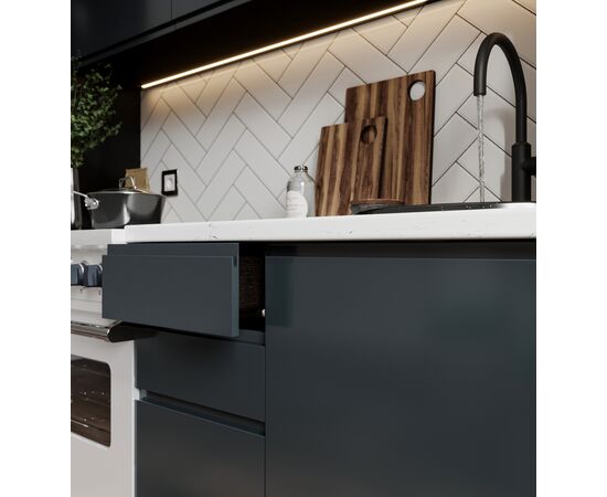 1. По умолчанию, кухонные модули комплектуются столешницей толщиной 28мм. Замена столешницы на толщину 38мм возможна за дополнительную плату.
