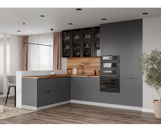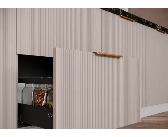 Фасады выполнены из МДФ 16мм плюс дополнительная планка 3мм, что дает нам 19мм толщины по периметру.