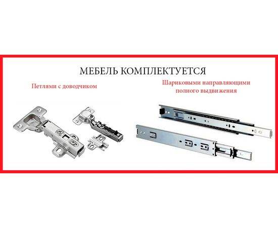 4. Кухня комплектуется направляющими шариковыми полного выдвижения, петлями с доводчиками.