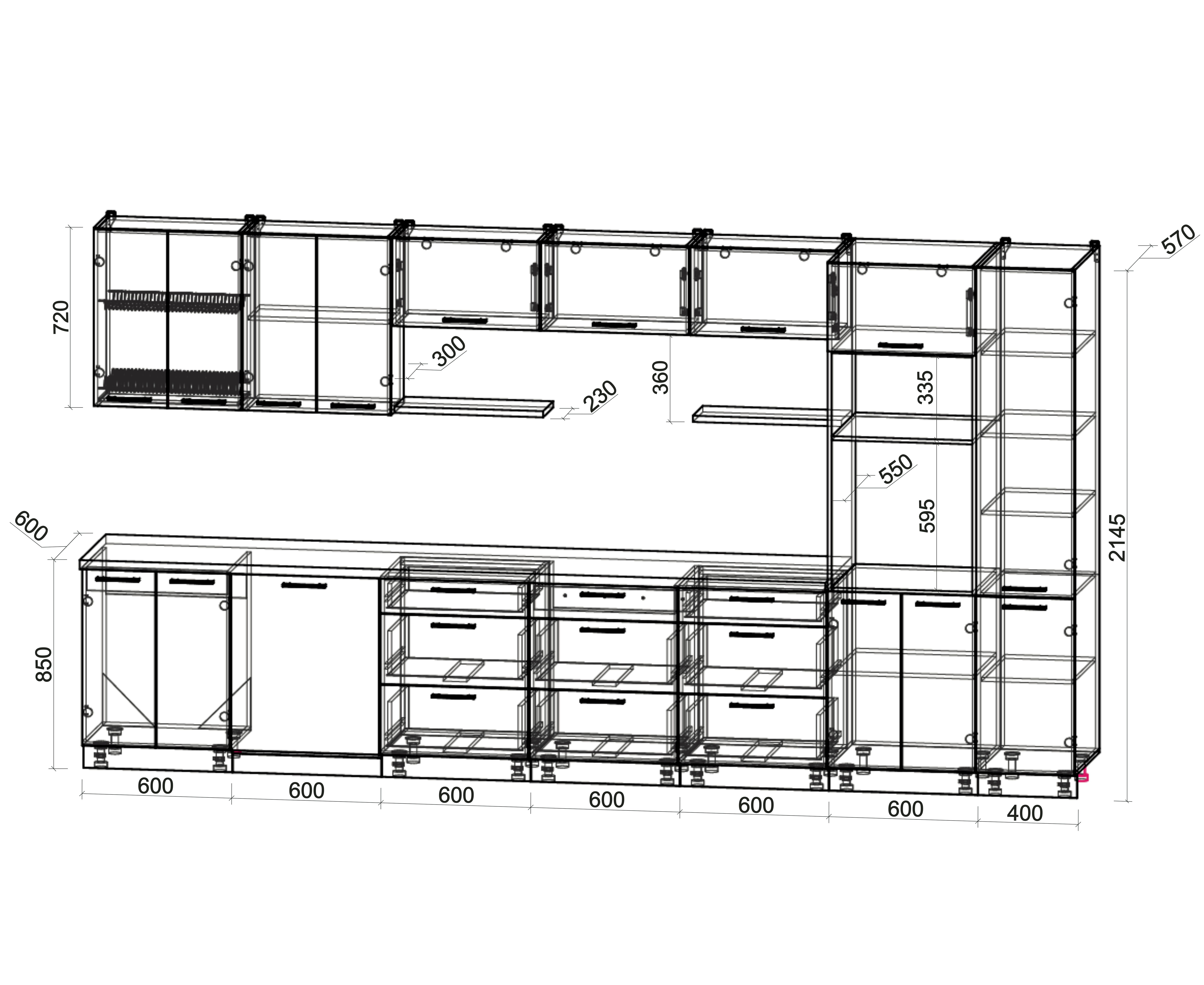 Кухня Мила Глосс ПМ 1 (кашемир/черный глянец)