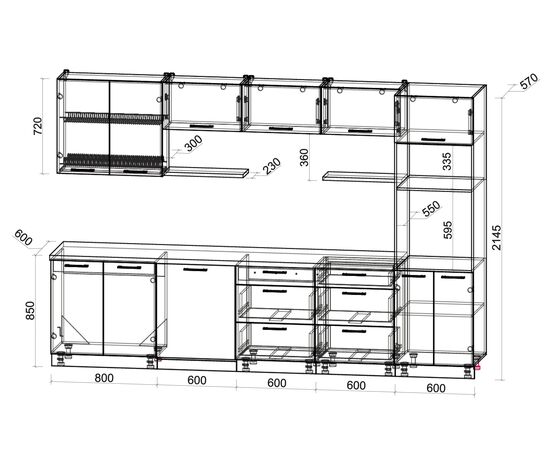 Кухня Мила Глосс ПМ 1 (красный глянец/асфальт глянец)