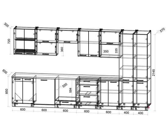 Кухня Мила Глосс ПМ 2 (белый/керамика)