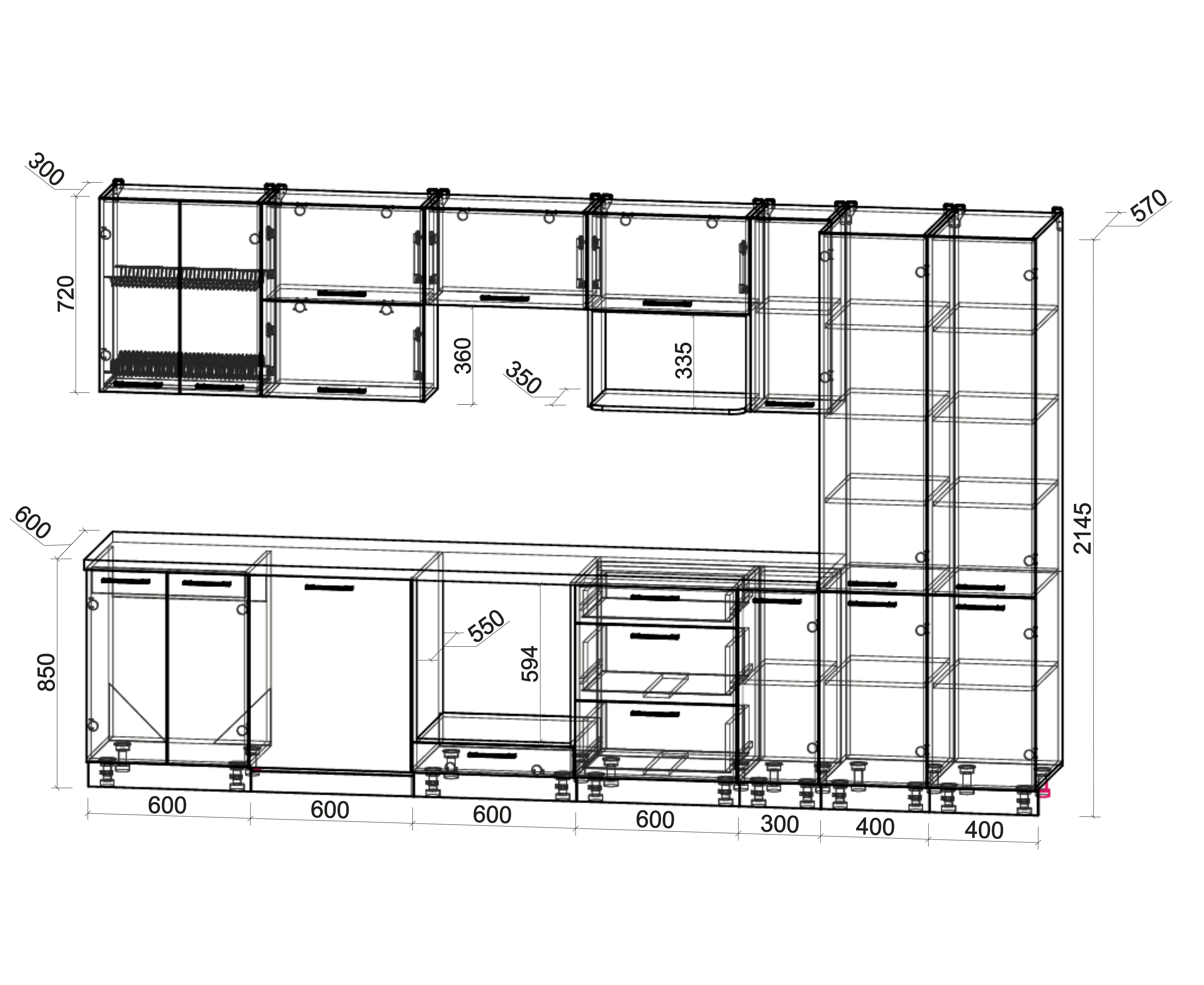 Кухня Мила Глосс ПМ 2 (белый/серый)