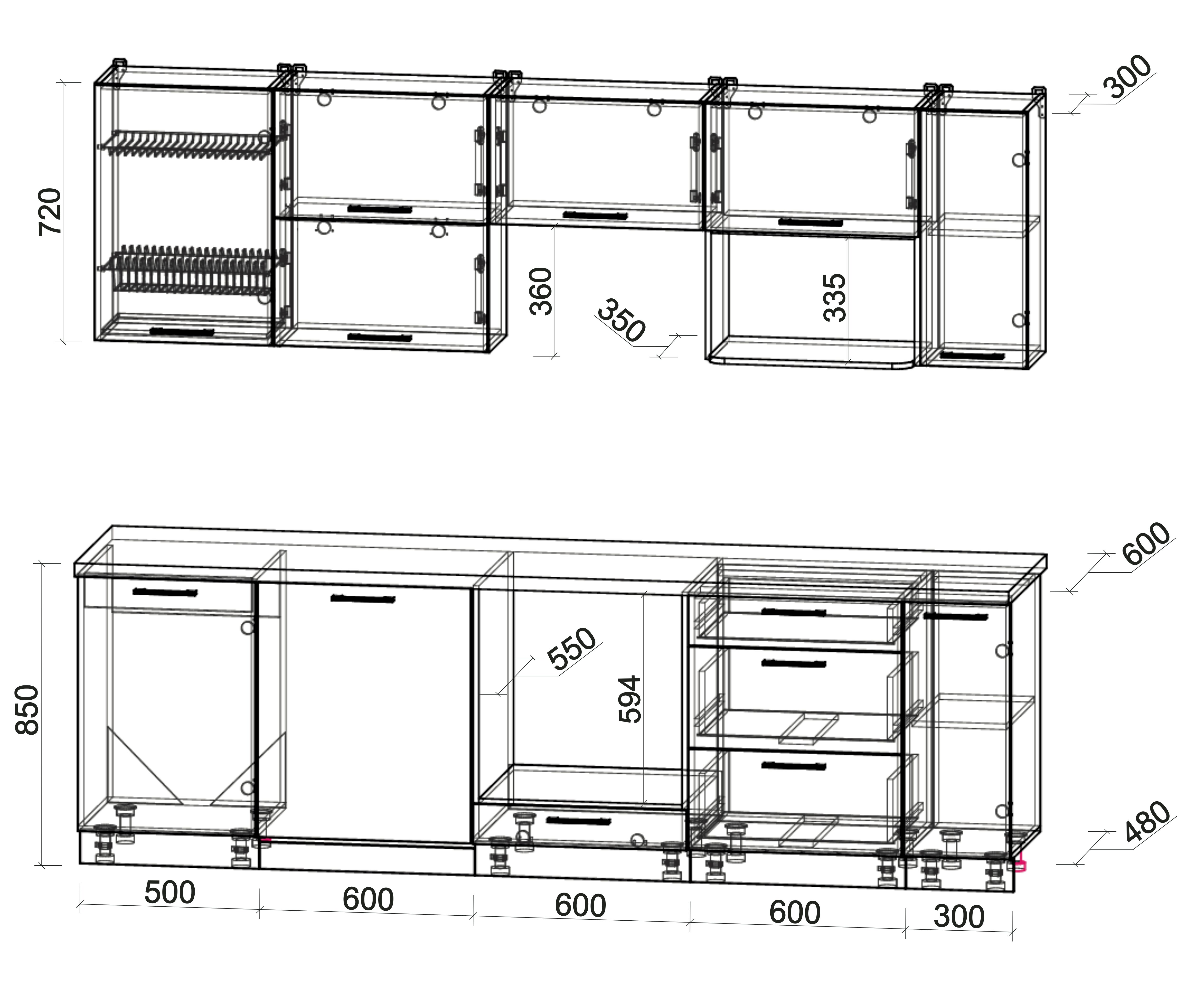 Кухня Мила Глосс ПМ 2 (красный глянец/черный глянец)