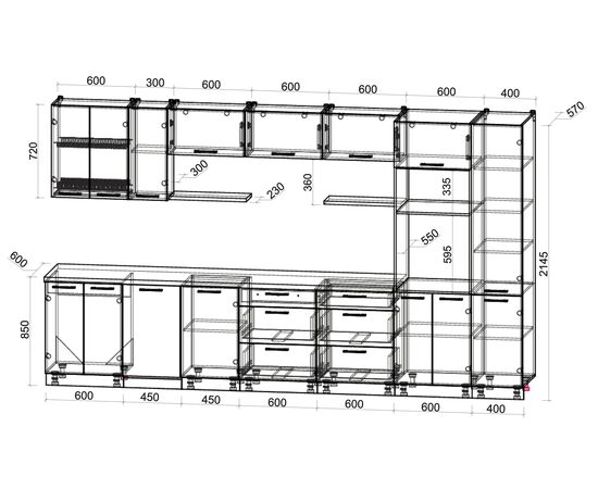 Кухня Мила Глосс ПМ 3 (красный глянец/асфальт глянец)