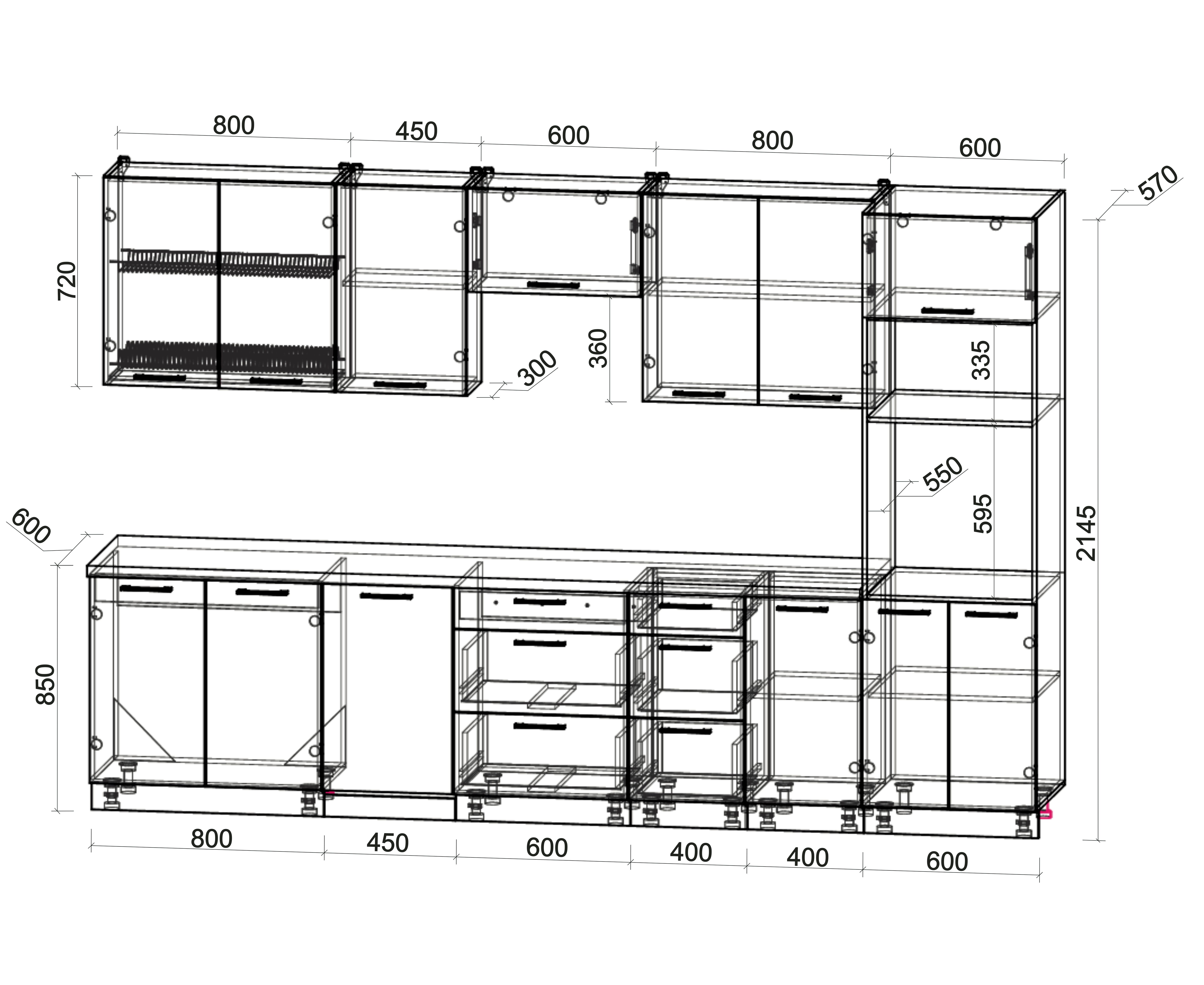 Кухня Мила Глосс ПМ 3 (пепел/пепел)