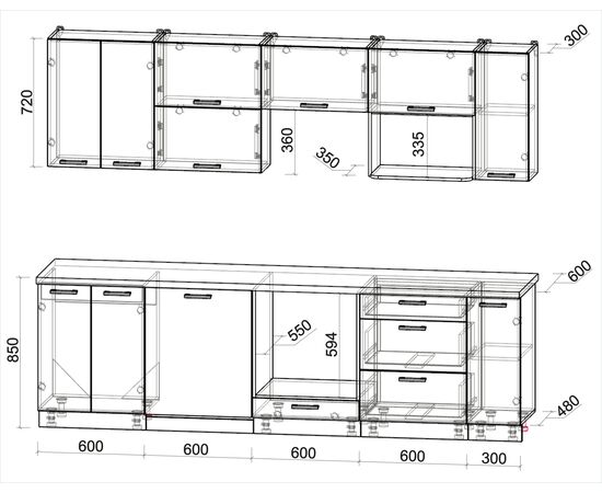 Кухня Мила ПМ 2 (белый/бетон лайт)