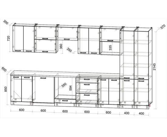Кухня Мила ПМ 2 (белый/бетон портленд)