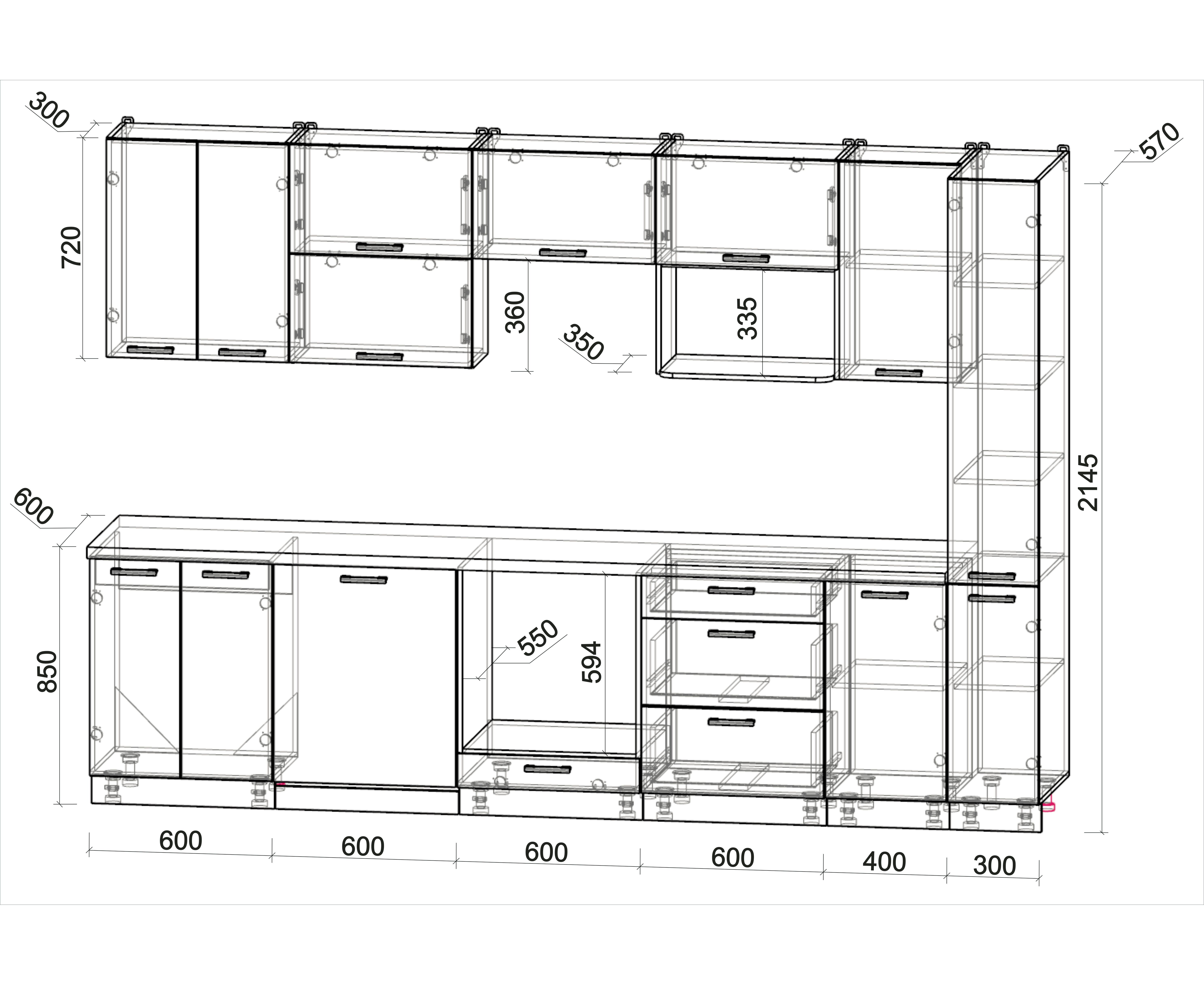 Глубина нижних шкафов (по столешнице)