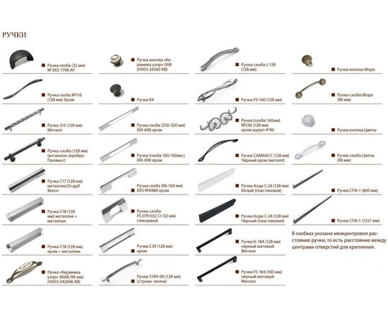 1. Кухонный гарнитур «Модерн NEW» не комплектуется ручками, но имеет разметку под ручки с межцентровым расстоянием 128 мм. Ручки можно выбрать из ассортимента фабрики (ассортимент уточняйте у менеджера)