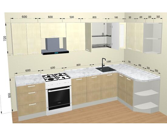 Кухня модульная угловая Мила ЛДСП 3,08х1,6м.