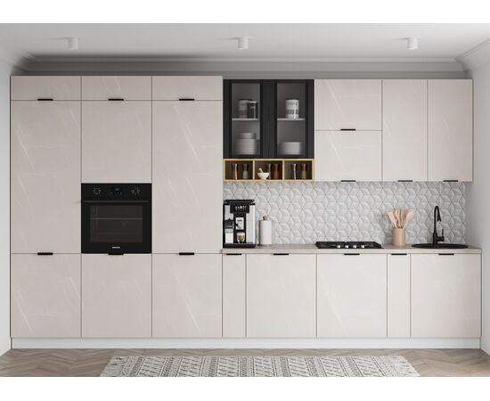 Фасады выполнены из МДФ 16мм плюс дополнительная планка 3мм, что дает нам 19мм толщины по периметру.