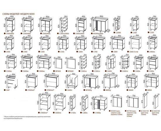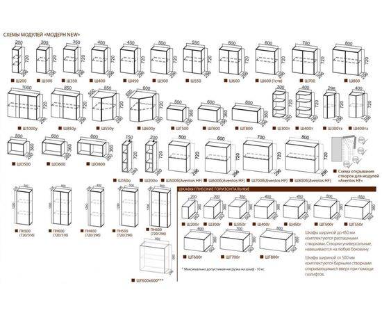 1. Кухонный гарнитур «Модерн NEW» не комплектуется ручками, но имеет разметку под ручки с межцентровым расстоянием 128 мм. Ручки можно выбрать из ассортимента фабрики (ассортимент уточняйте у менеджера)
