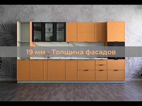 Фасады выполнены из МДФ 16мм плюс дополнительная планка 3мм, что дает нам 19мм толщины по периметру.