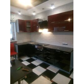 Кухня угловая Мила Глосс 60 (бордовый/черный глянец)