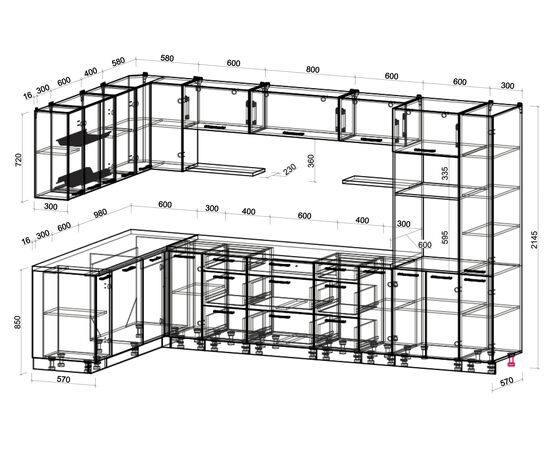 Кухня угловая Мила Глосс ПМ (кашемир/дуб вотан)