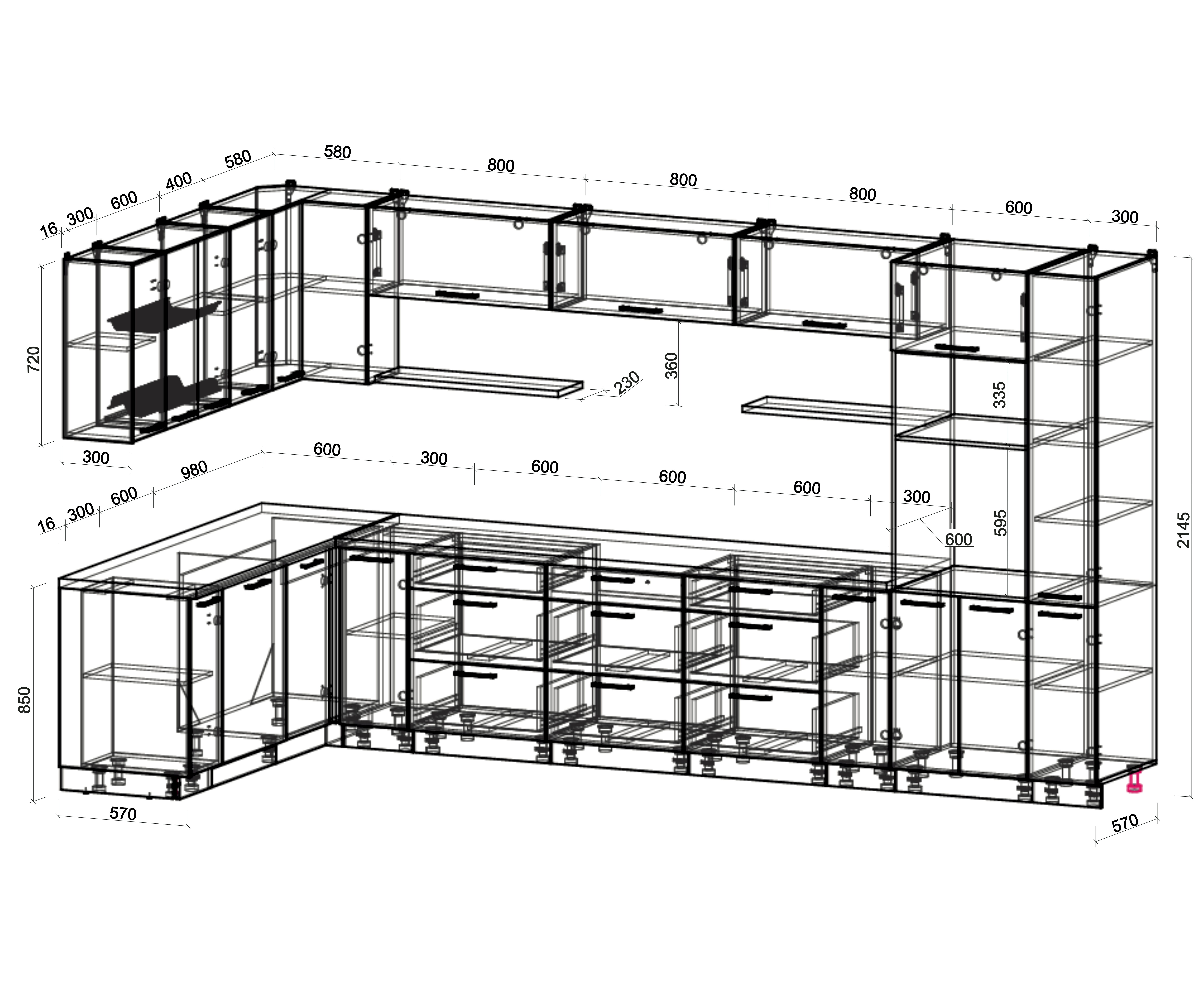 Кухня угловая Мила Глосс ПМ (кашемир/дуб вотан)