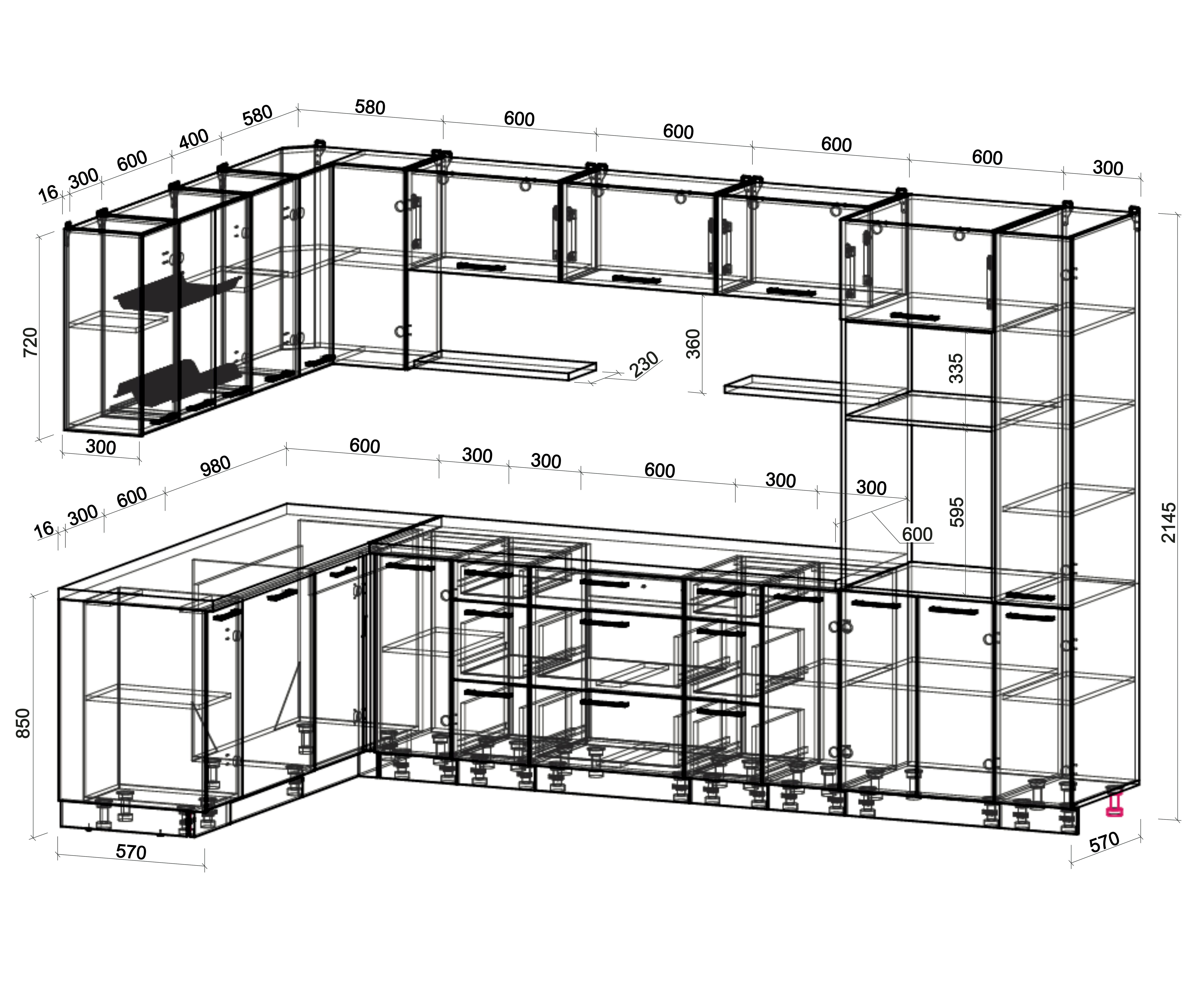 Кухня угловая Мила Глосс ПМ (кашемир/дуб вотан)