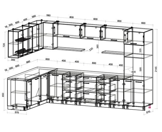 Кухня угловая Мила Глосс ПМ (яблоко глянец/яблоко глянец)