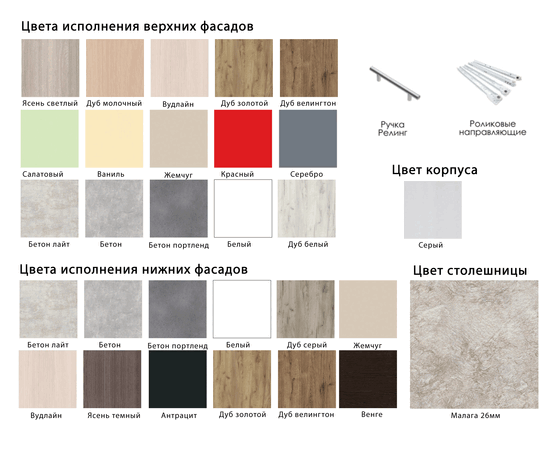 1. Цвет кромки для фасадов красного, салатового, антрацит, серебристого цвета - алюминий (серая).