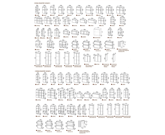 1. Модули с корпусом в цвете «Серый» комплектуются петлями «Titus» с возможностью установки демферов для плавного закрывания створок