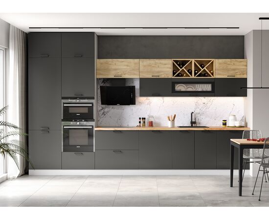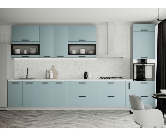 Фасады выполнены из МДФ 16мм плюс дополнительная планка 3мм, что дает нам 19мм толщины по периметру.