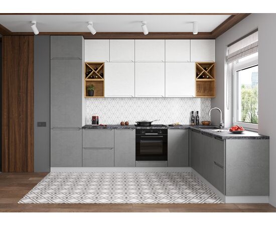 Кухня угловая Тренто штукатурка серая