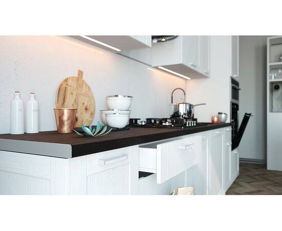 1. По умолчанию, кухонные модули комплектуются столешницей толщиной 28мм. Замена столешницы на толщину 38мм возможна за дополнительную плату.