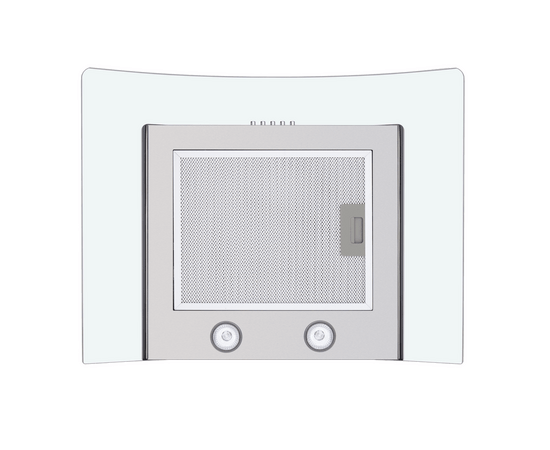 Оригинальная кухонная Т-образная вытяжка шириной 50 см со стеклянной арочной накладной панелью. Монтируется на стену над поверхностью плиты и может функционировать в двух режимах – отвода (при подключении вытяжки к системе вентиляции) и рециркуляции (при использовании сменного угольного фильтра в вытяжке).