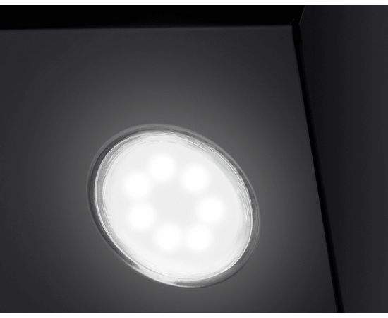 Кнопочное управление 3-мя скоростными режимами и светодиодной подсветкой, располагается на фасаде. Два LED-источника мощностью по 3 Вт отличаются простой установкой без применения специальных инструментов