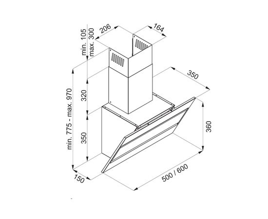 Наклонная настенная вытяжка шириной 60 см – оптимальное решение для кухонь площадью до 35 кв.м. Работает в двух режимах – отвода (при подключении вытяжки к системе вентиляции) и рециркуляции (при использовании сменного угольного фильтра в вытяжке).