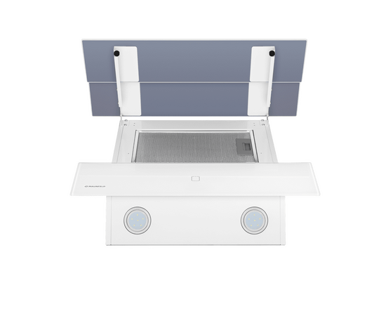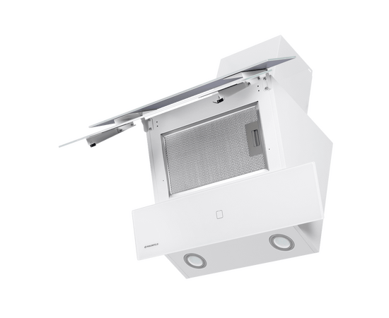 Многослойный алюминиевый жироулавливающий фильтр, скрытый за двумя верхними откидными панелями, легко снимается и полностью разбирается, что сильно упрощает чистку.