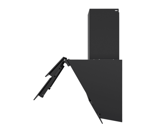 Стильная наклонная настенная вытяжка черного цвета шириной 60 см - это оптимальное решение для большой кухни (до 20 кв.м). Монтируется на стену над поверхностью плиты и работает в двух режимах: отвода (при подключении вытяжки к системе вентиляции) и рециркуляции (при использовании сменного угольного фильтра в вытяжке).