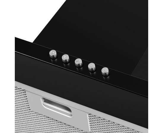 Вытяжка выполнена из нержавеющей стали с эмалевым покрытием черного цвета. Большая площадь рабочей зоны, состоящей из двух многослойных жироулавливающих фильтров, позволяет эффективно захватывать загрязненный воздух на кухне большой площади (до 20 кв.м). Фильтры легко снимаются и в случае необходимости очистки полностью разбираются.