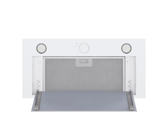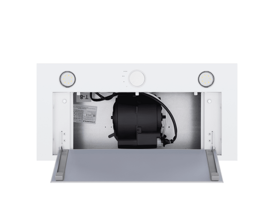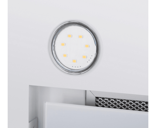 Элегантная встраиваемая кухонная вытяжка шириной 60 см выполнена в белом цвете. Прекрасно подойдет для кухни большой площади до 35 кв.м. Модель встраивается в навесной шкаф над поверхностью плиты. Работает в двух режимах – отвода (при подключении вытяжки к системе вентиляции) и рециркуляции (при использовании сменного угольного фильтра в вытяжке).