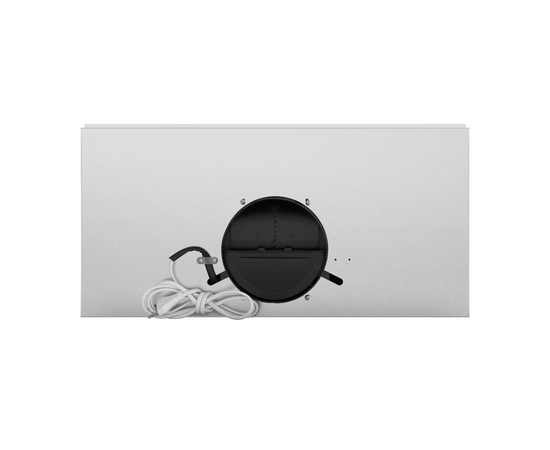 Корпус и фасад сделаны из нержавеющей стали с высококачественным покрытием. Откидная панель из глянцевого закаленного стекла фиксируется на магнитных защелках. За ней располагается легко снимающийся жироулавливающий алюминиевый фильтр. Загрязненный воздух втягивается по периметру откидной панели.