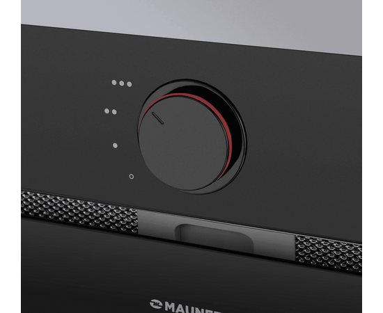 Выбор одного из 3-х режимов работы вытяжки осуществляется с помощью поворотного переключателя белого цвета с красной полосой. Нажав на переключатель как на кнопку, вы включаете освещение (2 светодиодных светильника по 3 Вт каждый).