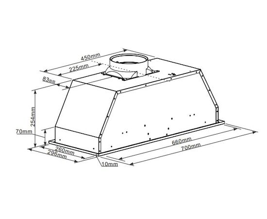 Мотор мощностью 102 Вт. Максимальная производительность – 800 м3/ч. Использование высококачественных материалов обеспечивает низкий уровень шума работы вытяжки – не более 49 дБ.