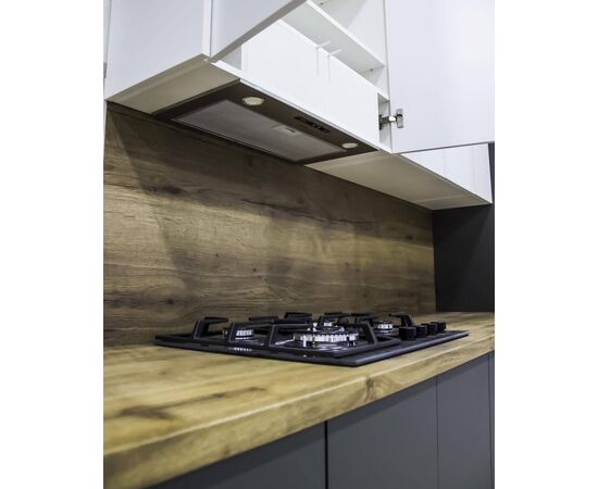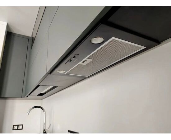 Классическая встраиваемая кухонная вытяжка шириной 60 см – идеальное решение для большой кухни площадью до 35 кв.м. Модель встраивается в навесной шкаф над поверхностью плиты. Работает в двух режимах – отвода (при подключении вытяжки к системе вентиляции) и рециркуляции (при использовании сменного угольного фильтра в вытяжке).