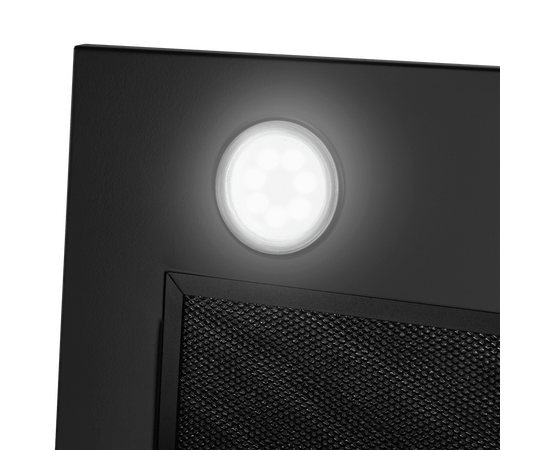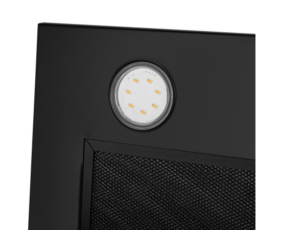 Кнопочная система управления вытяжки позволяет выбрать один их 3-х режимов работы и включить подсветку. Освещение рабочей поверхности обеспечивается 2-мя мощными светодиодными светильниками (3 Вт).