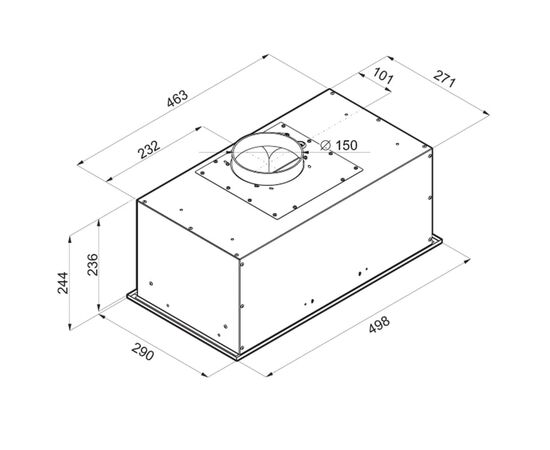 Мотор мощностью 126 Вт. Максимальная производительность – 1050 м3/ч. Использование высококачественных материалов и комплектующих обеспечивает низкий уровень шума работы вытяжки – не более 52 дБ.