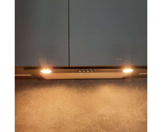 Классическая встраиваемая кухонная вытяжка шириной 60 см идеально подходит для большой кухни площадью до 30 кв.м. Модель встраивается в навесной шкаф над поверхностью плиты. Может использоваться для отвода воздуха из помещения при подключении к системе домовой вентиляции или очищать воздух с помощью сменного угольного фильтра.